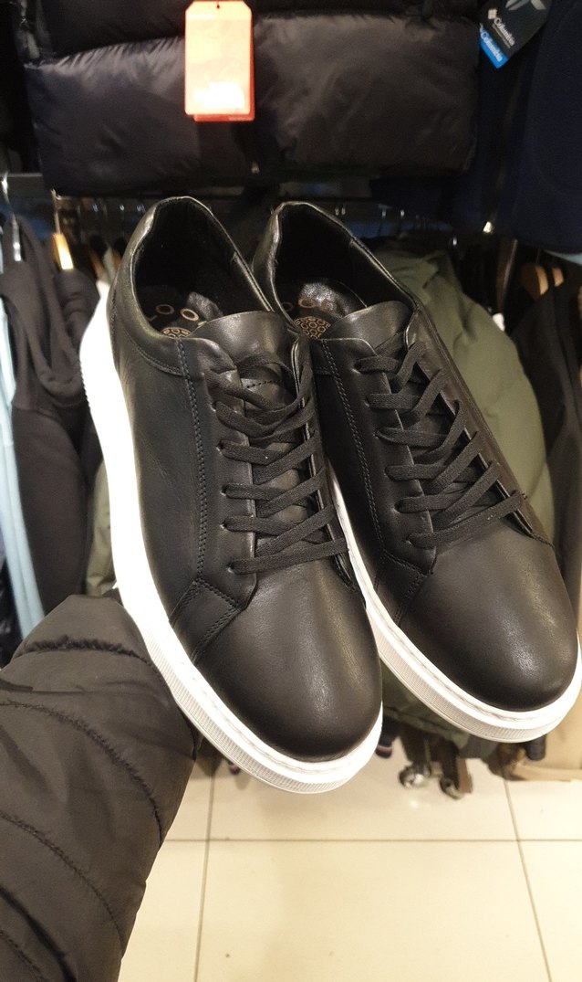 Siyah deri ve beyaz tabanlı, bağcıklı erkek günlük ayakkabısı. Sokak stili için uygun, desensiz ve şık tasarım. TEKLİF ETMEYİN LÜTFEN. 1999 TL SATIYORLAR ORTALAMA BUNU MAĞAZALARDA AVM LERDE KENDİ FARKİ GÖRÜN EFENDÎM ÖYLE ALIN DERİM.