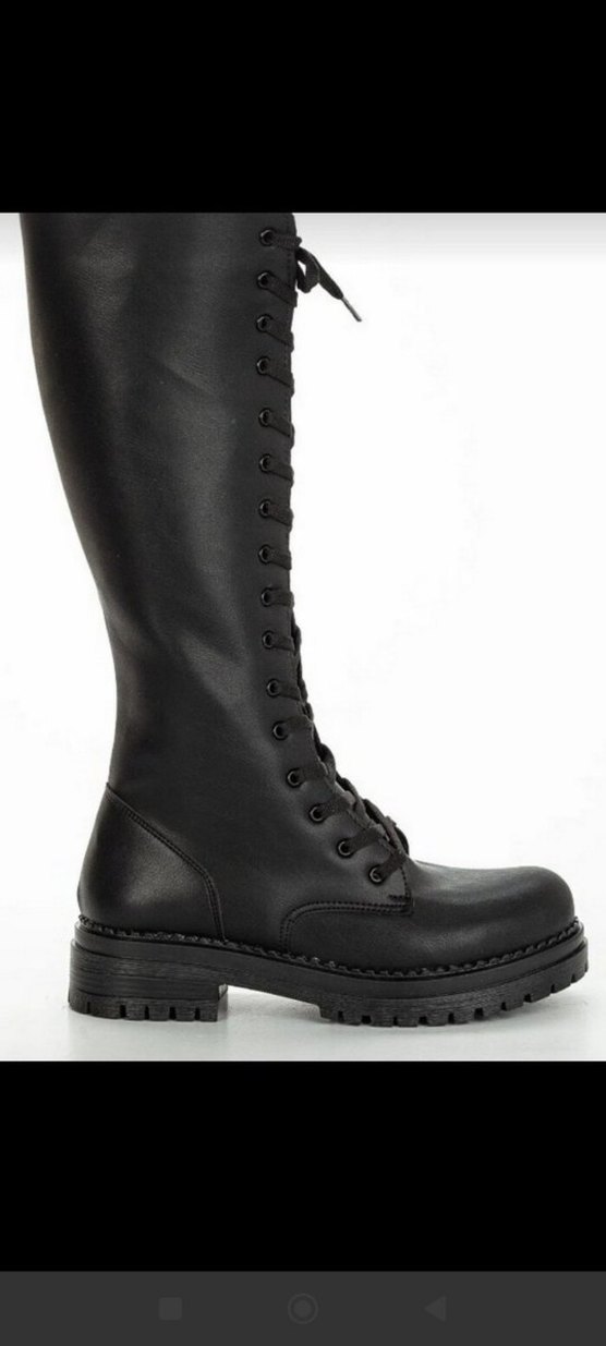 Siyah deri, bağcıklı ve stiletto topuklu goth bot, gündelik kullanım için sade ve desensiz tasarım. ürünü aldım ama kullanmadım kutusu yok sadece büyük geldi iade edemedim alıcıya hayırlı olsun kumaşı duruşu harika