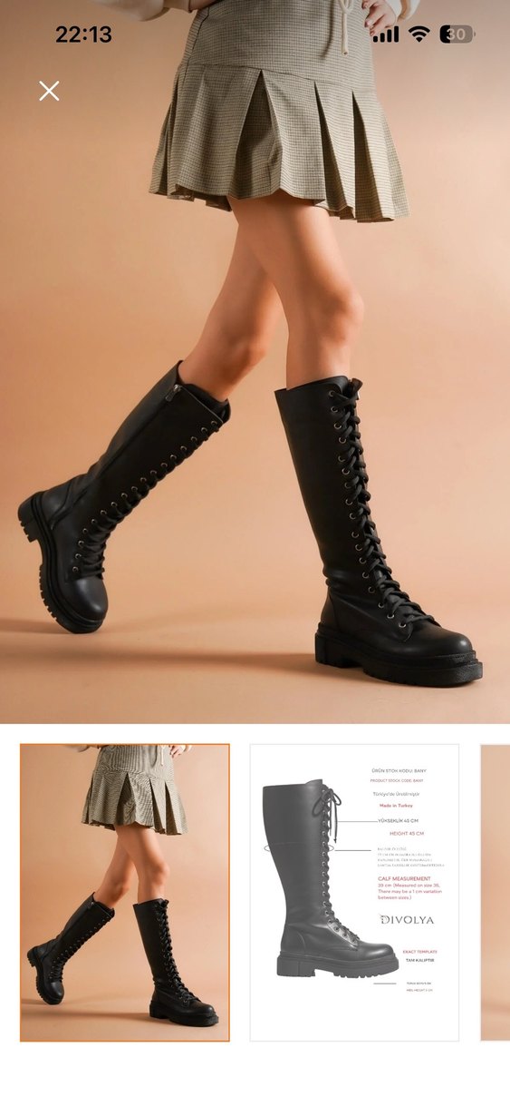 Siyah deri, diz boyu, stiletto topuklu ve bağcıklı kadın botu. Trendy sokak stiline uygun, desensiz ve günlük kullanıma elverişli. En fazla üç kere giyilmiştir