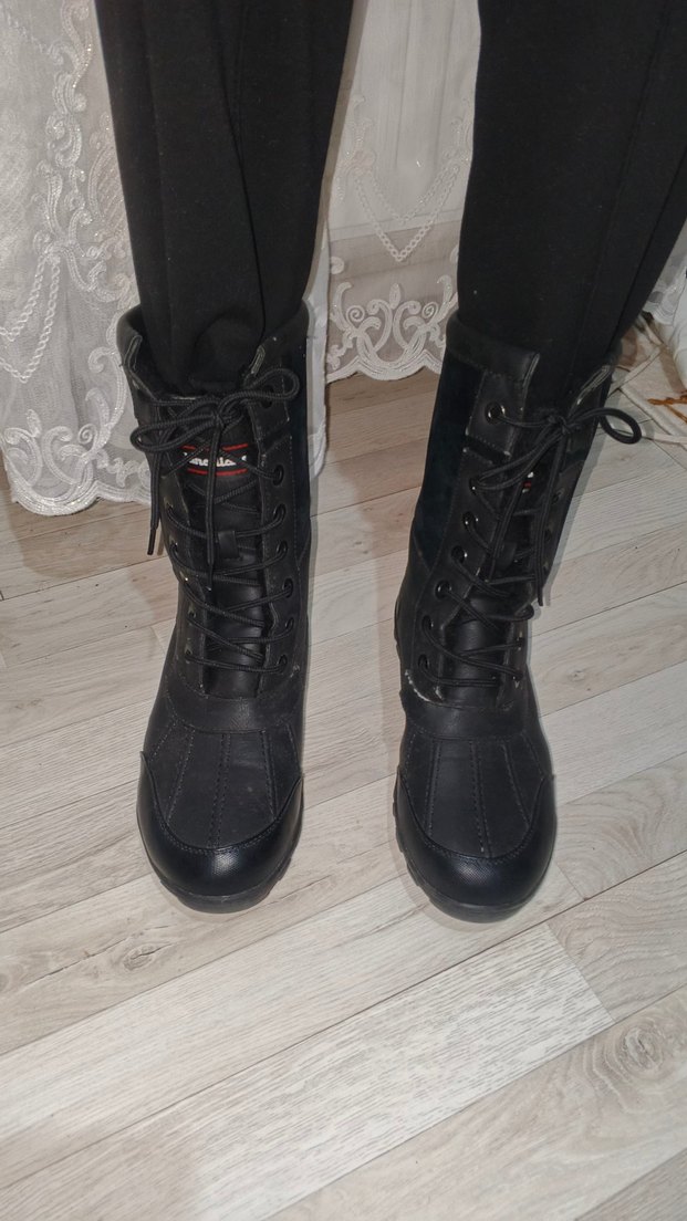 Siyah deri olan bu botlar yüksek topuklu ve bağcıklıdır, trend sokak stiline uygundur. Desensiz ve günlük kullanım için idealdir.