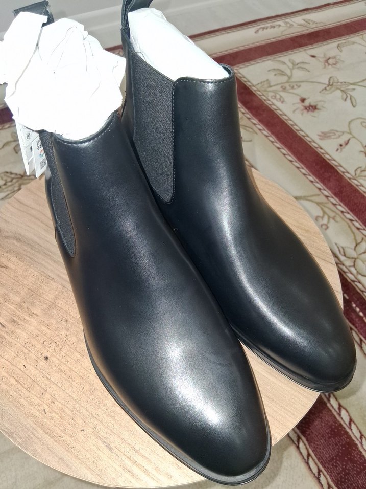 Siyah deri, bot Klasik ve desen içermeyen tasarımı ile ofis ve günlük kullanıma uygun.