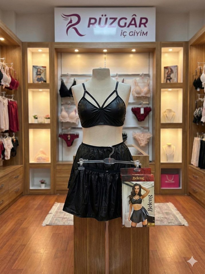 Siyah Deri Bel Kemerli Mini Bustiyer