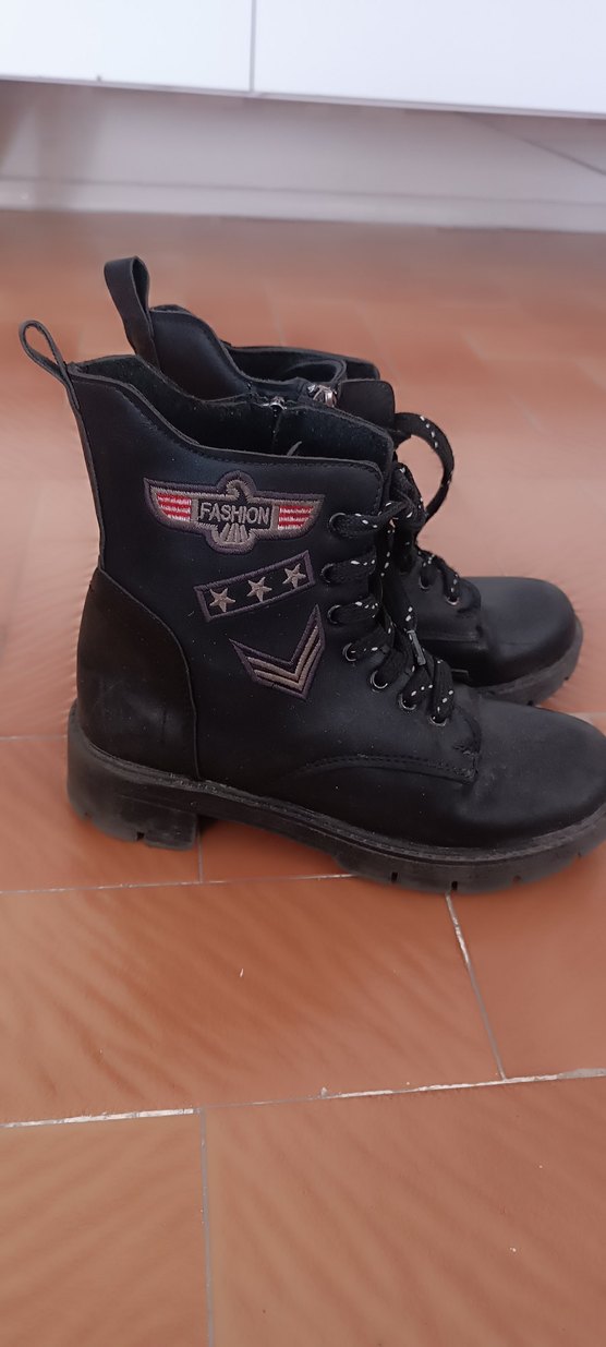Sayılı giyilmistir.Hicbir sorunu yoktur.Siyah deri biker botlar yüksek topuklu, tm kamuflaj desenli detaylara sahip. Günlük kullanıma uygun grunge punk tarzı.İade yoktur
