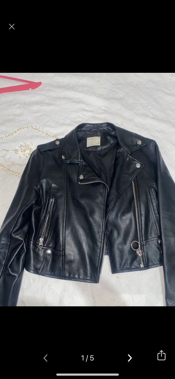 Siyah Deri Biker Ceket