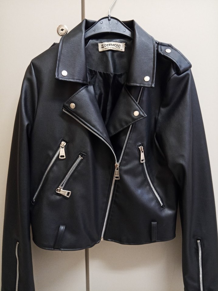 Siyah Deri Biker Ceket