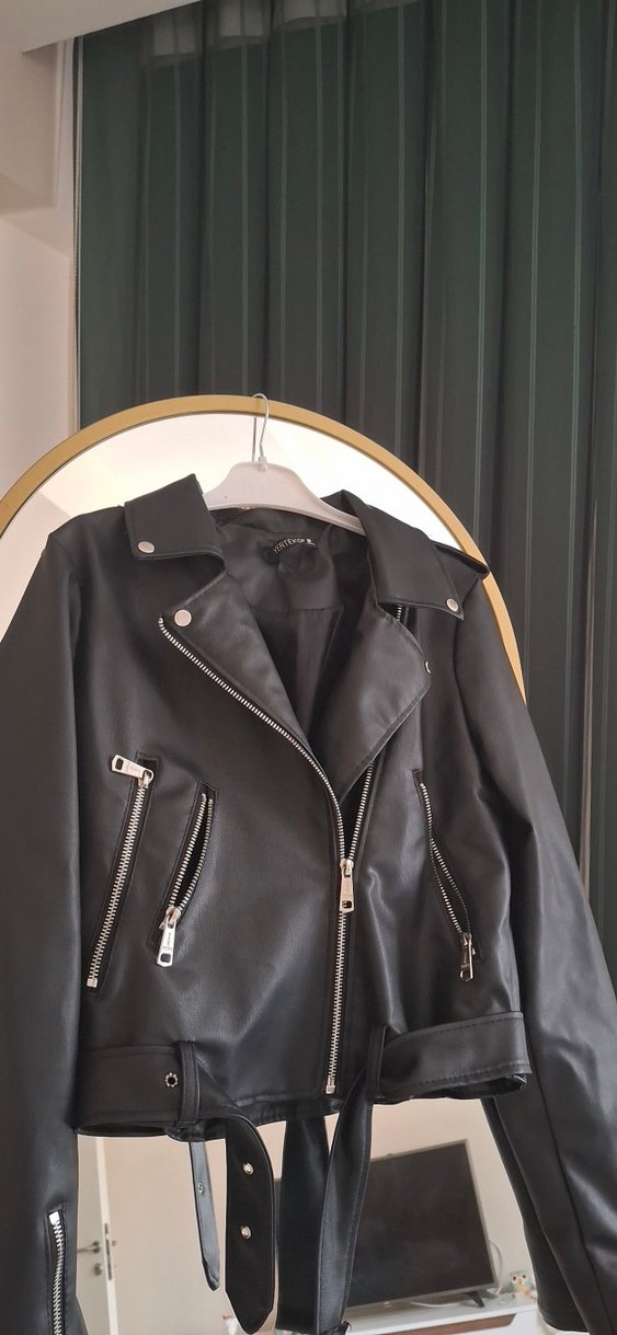 Siyah Deri Biker Ceket