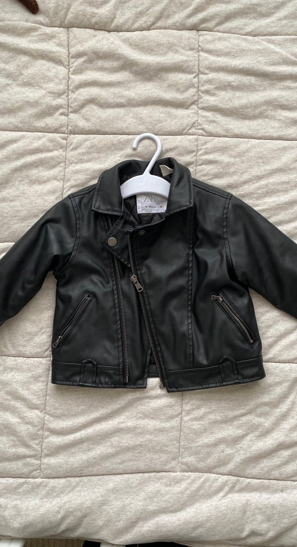 Yepyeni. Sayılı giyildi. Çocuğunuzda çok tarz duracak. için siyah deri biker ceket, oturan kesim, çıtçıtlı yaka ve fermuarlı ceplerle trendy casual tarz sunar.