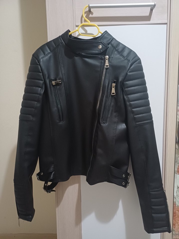 Siyah Deri Biker Ceket