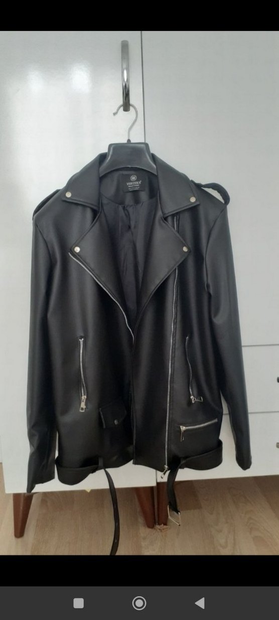 Siyah deri biker ceket, rahat sokak stili için uygundur. 1 kez giyildi. Dolabımda fazlalık olduğu için satıyorum, ürün yenidir sadece etiketi yok.