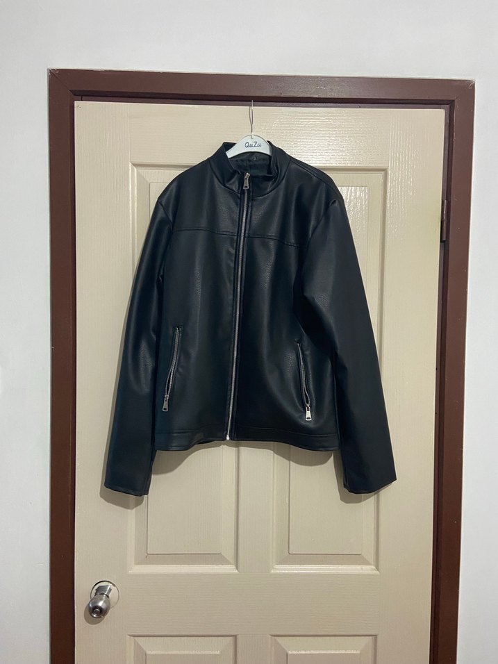 Yüksek yakalı, fermuarlı cep ve önden fermuarlı siyah deri biker ceket. günlük kullanım için uygun. Bir kaç kez giydim herhangi bir kusuru yok.Bedenime Dar geldiği için satıyorum.