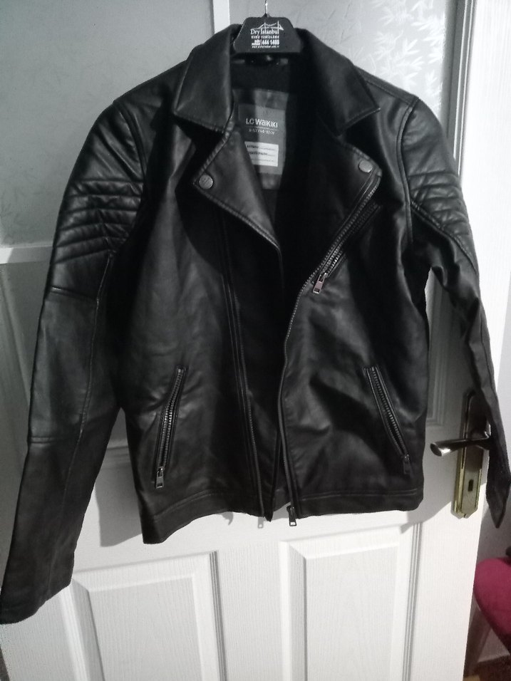 Siyah Deri Biker Ceket
