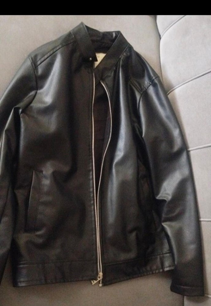 Siyah Deri Biker Ceket