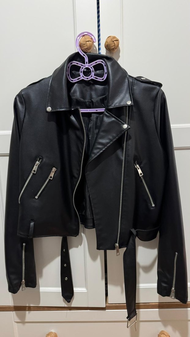 Siyah Deri Biker Ceket