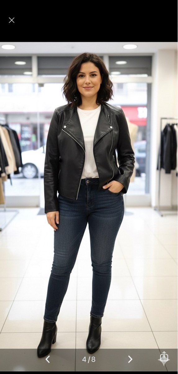 Siyah suni deri biker ceket, kesik yakalı, fermuarlı ve uzun kolludur. Normal kesim ve midi boydadır, günlük kullanıma uygundur.çok az kullanıldı tertemizdir hiç bir kusuru yoktur