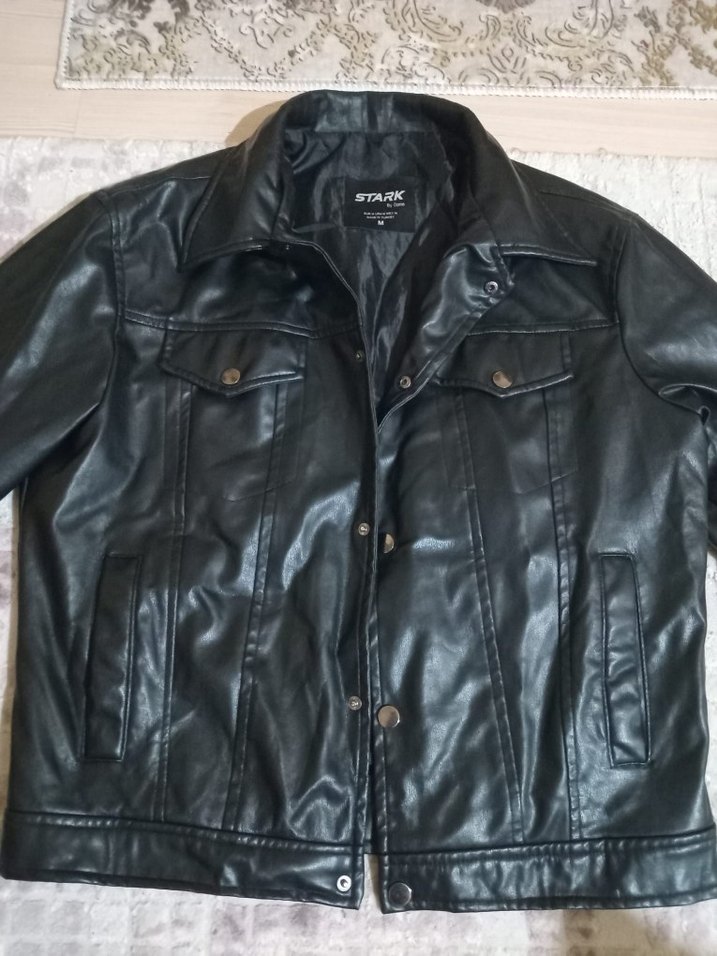 Siyah deri biker ceket, düğmeli ön, kesik yaka ve uzun kollu. Normal boy ve regular fit, günlük sokak stiline uygun. yk2 defosuz fiyat