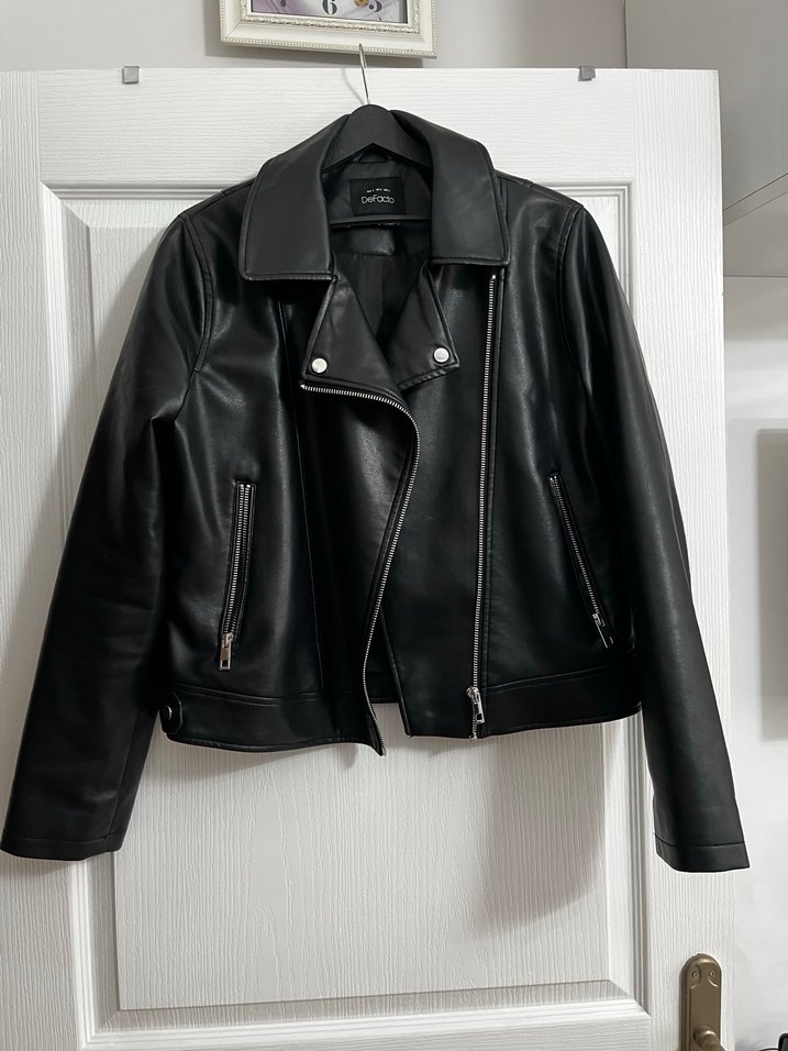 L beden defacto siyah deri ceket cok az giyildi
