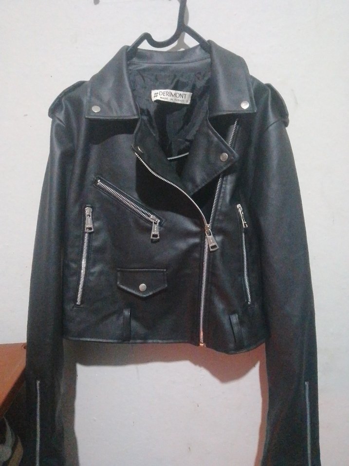 Fermuarlı detaylara sahip, siyah deri biker ceket. Notlu yaka ve kayışlı kollarıyla grunge punk tarzını yansıtır. Günlük kullanıma uygun.