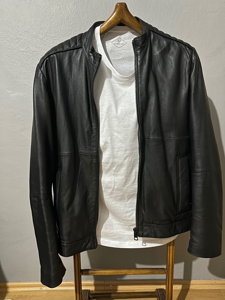 Siyah deri biker ceket, yuvarlak yaka, uzun kollu ve kemerli. Normal kesim, minimalist tarzda ve günlük kullanıma uygun. Ürün yeni gibi son resimde kolunda az bi çizilme var. Ölçüleri koltuk arası 55cm uzunluğu 70 cm kol uzunluğu 69 cm.