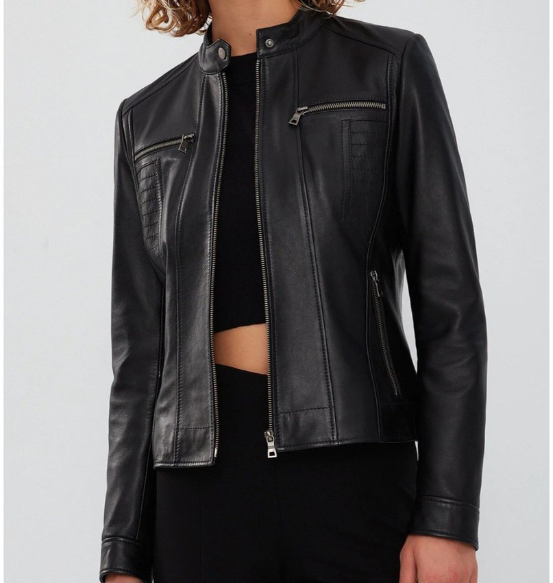 Siyah Deri Biker Ceket. Mango. hakiki deri