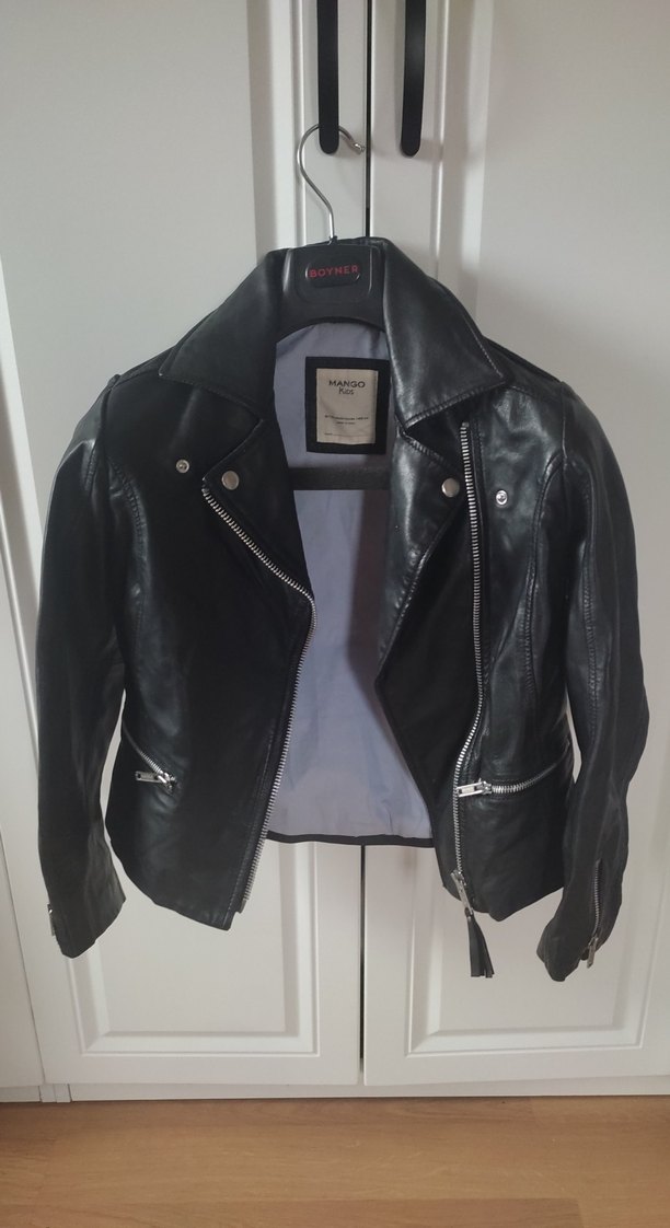 Siyah Deri Biker Ceket, Mango Kıds