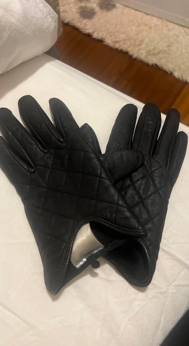 %100 Siyah deri, kapitone desenli ve tokalı biker kadın eldiveni, rahat ve şık tarzı bir araya getiriyor. Deride hafif yıpranmalar mevcut