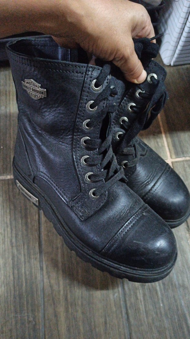 Siyah deri, stiletto topuklu ve tokalı detaylara sahip biker kadın botu. Desensiz, günlük kullanıma uygun dayanıklı model.
