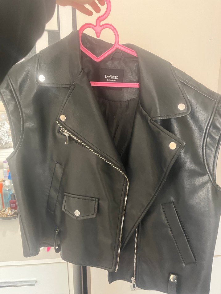 Siyah Deri Biker Yelek hiç sorunu yok