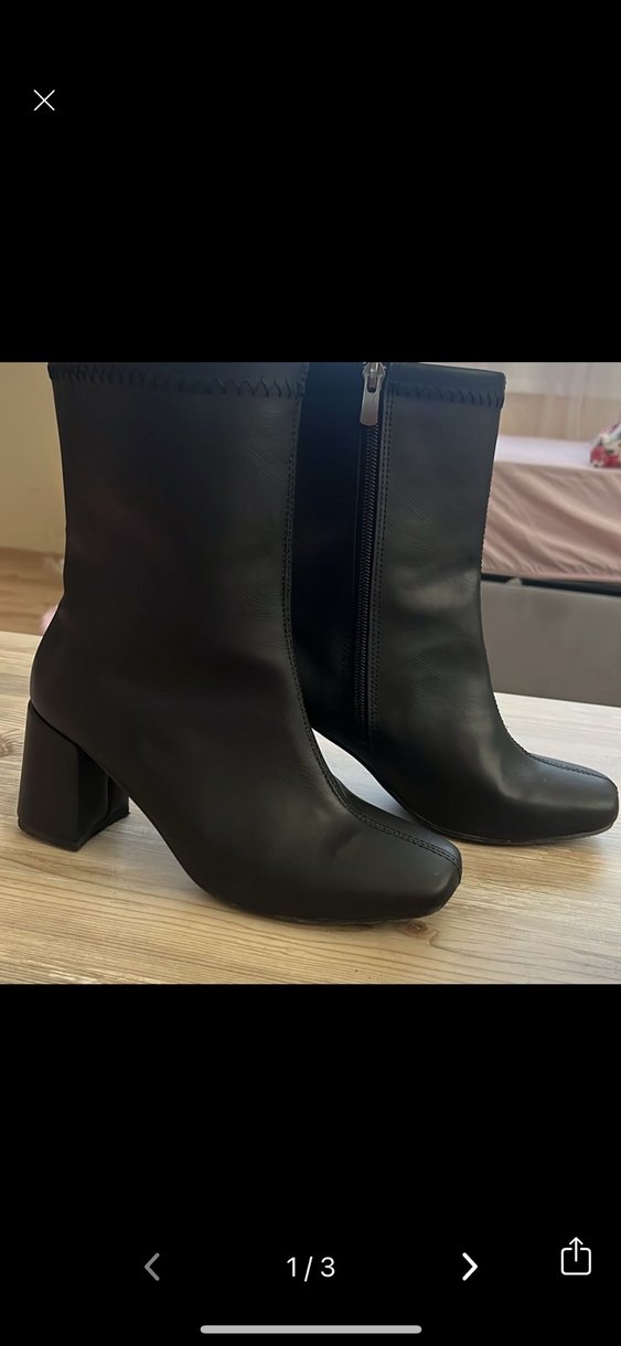 Siyah Deri Blok Topuklu Kadın Bot - Görsel 2