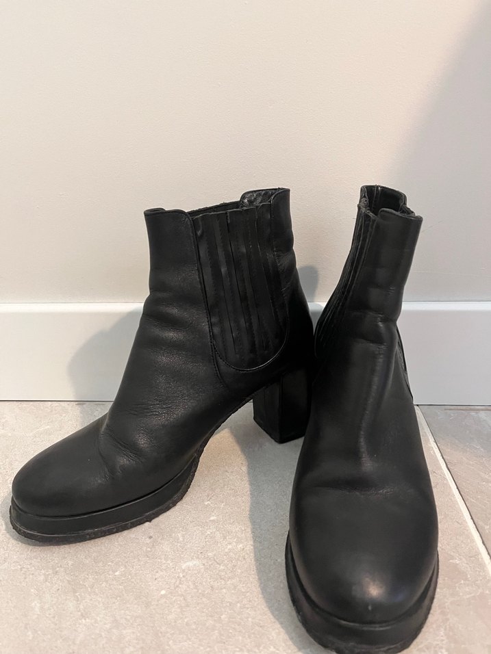 Siyah deri kadın botları, blok topuklu ve desen içermeyen şık tasarımıyla günlük kullanıma uygun, trend goth tarzında. Zahmetsiz şıklık sunar. Siyah,deri olup bilek kısmı lastiklidir. Çok rahat bir kalıptır. Kaydırmaz tabandır. Topuk boyu: 8cm. Genel olarak temiz bi üründür. Dilenirse boya ile yeni gibi olur #siyahbot #hotiç #desa