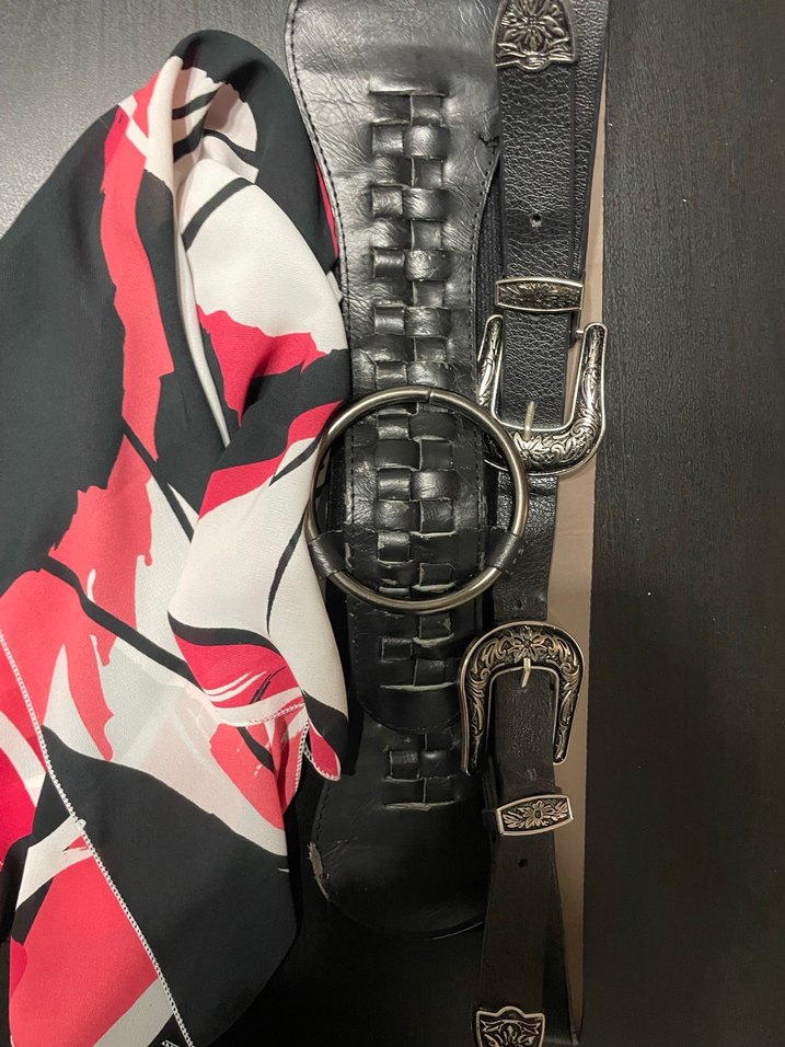Siyah deri kadın kemeri, tokalı ve detaylı tasarımıyla 2 kemer 1 Şal
