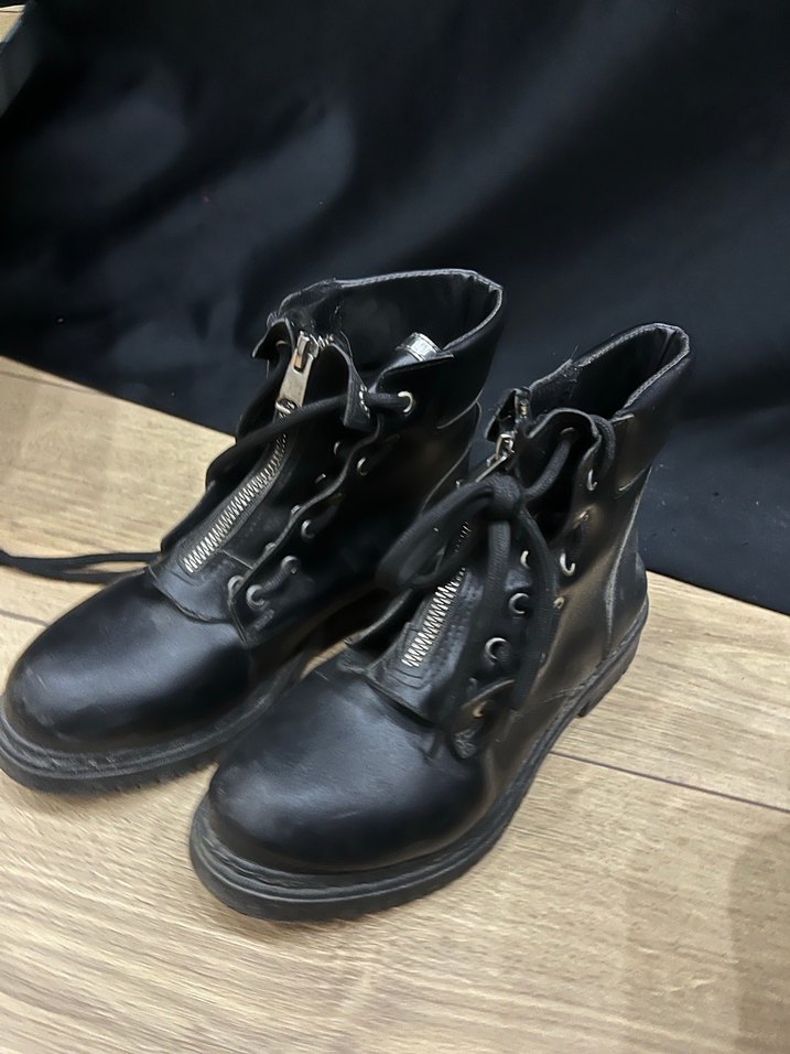 Sadece tozlu yoksa çok güzel Siyah deri goth stiletto topuklu, tokalı ve ön fermuarlı botlar. Grunge punk tarzına uygun, günlük kullanıma ideal.