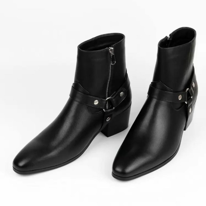 Erkek - Siyah Deri British Pointy Yüksek Topuklu Ayakkabı
