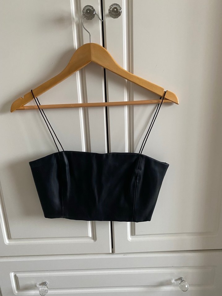 Siyah Deri Büstiyer Crop Zara