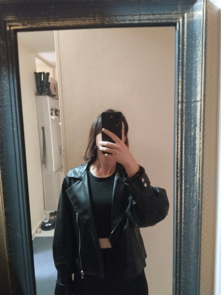Balon kol modeli. Boyu belde bitiyor. Ense kısmında deformesi var giyildiğinde belli olmuyor. S-M beden uyumlu. Cepli fermuarlı model.