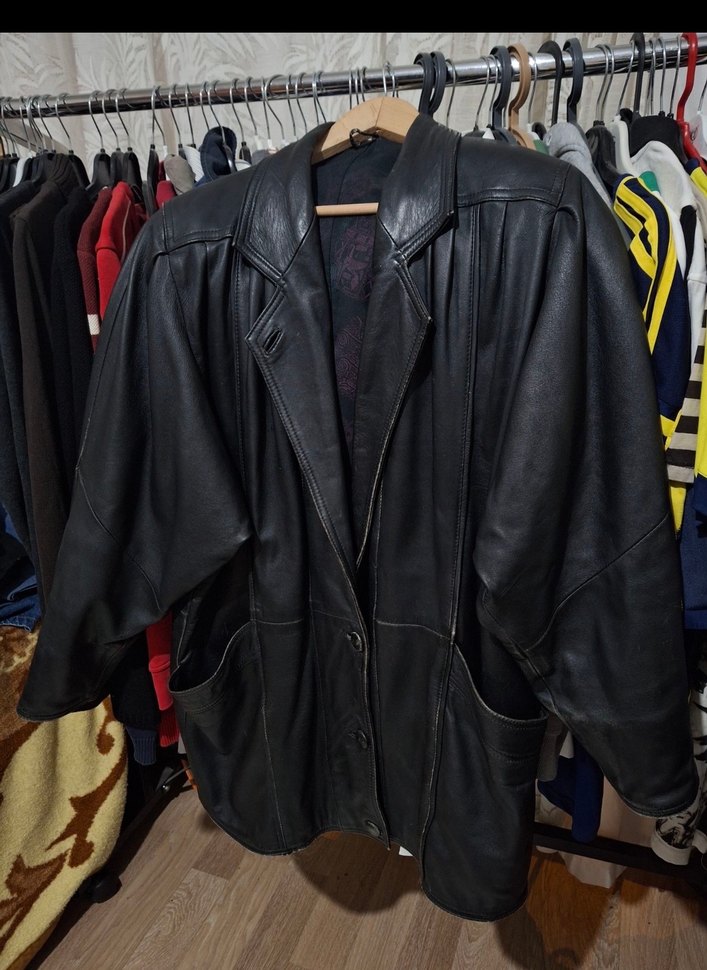 Düğmeli, siyah deri kadın ceket, notched yaka ve uzun kollu. Gevşek kesim, midi boy ve desensiz, günlük kullanıma uygun. Marka temsilidir