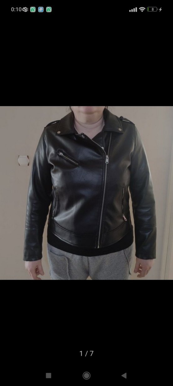 Dar kesim siyah deri ceket, uzun kollu, bisiklet yaka ve fermuarlı detaylara sahiptir. Günlük şıklık için uygundur. 2 kere falan giyindi, herhangi bir kusuru yoktur.