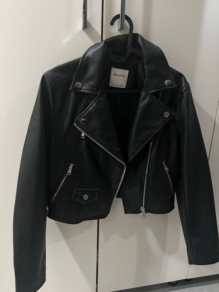 Siyah deri, fitted kesim biker ceket.Bershka Small beden, 2 kere kullanıldı hic bir deformesi yok sorunsuz kullanıldı tertemiz.