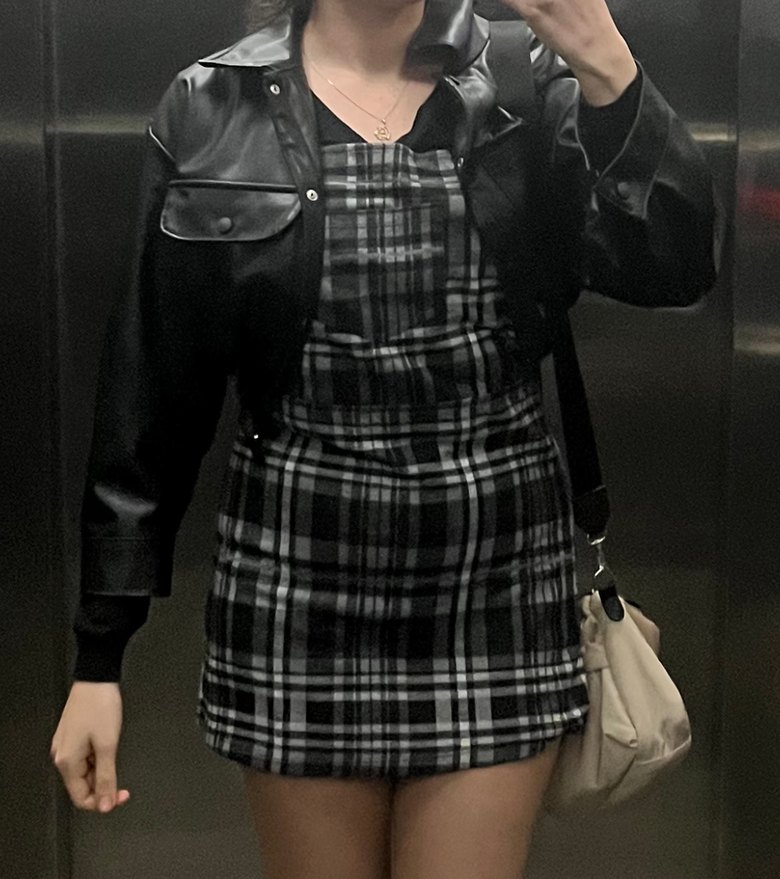 Siyah deri, kemerli, kısa ve fitted kesim ceket. Trendy casual tarz için uygun, strap kolye detaylı.