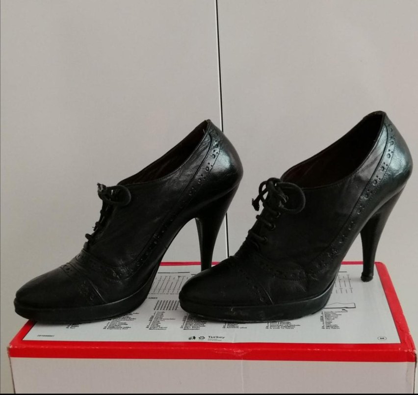 Siyah deri, dantel detaylı ve baskılı desene sahip topuklu kadın ayakkabısı, ofis için gotik tarzda uygun. #37numara #siyah #incetopuklu #platform #ayakkabı #deri #deriayakkabı