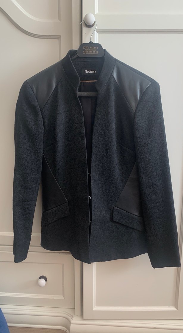 Siyah Deri Detaylı Kadın Blazer Ceket