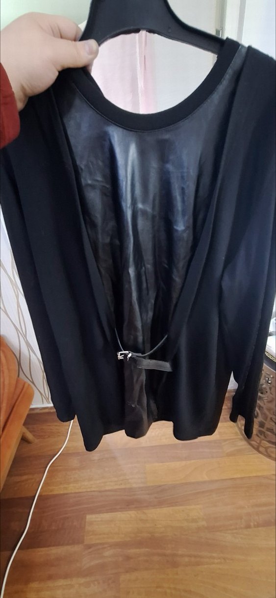 Siyah Deri Detaylı Uzun tunik