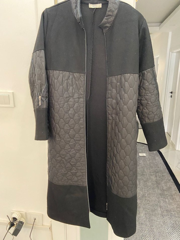 Siyah Deri Detaylı Uzunn kaban