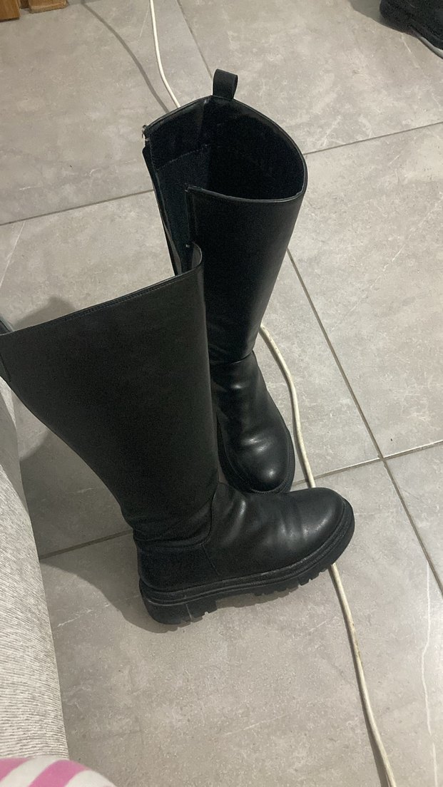 Siyah Deri Diz Boyu Kadın Çizme