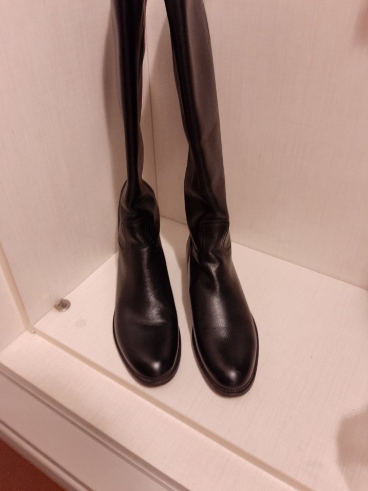 Siyah deri dizboyu,ince topuklu çizme Günün her zamanında,şıklıkla kullanılabilecek bir ürün olup, ofis kullanımına uygun. Bu urun,burdaki diger urunler gibi ,yurt dışına gidiş nedeni ile satılmaktadır.