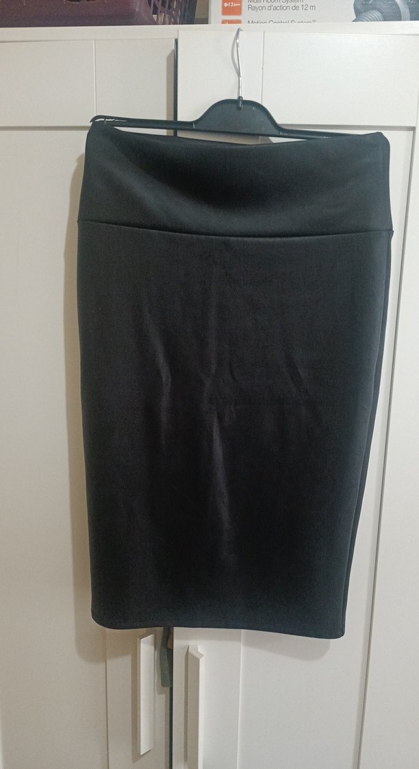 Siyah derikumaştan, drapeli detaylı, midi boy kalem etek, modern ve şık tasarıma sahiptir.