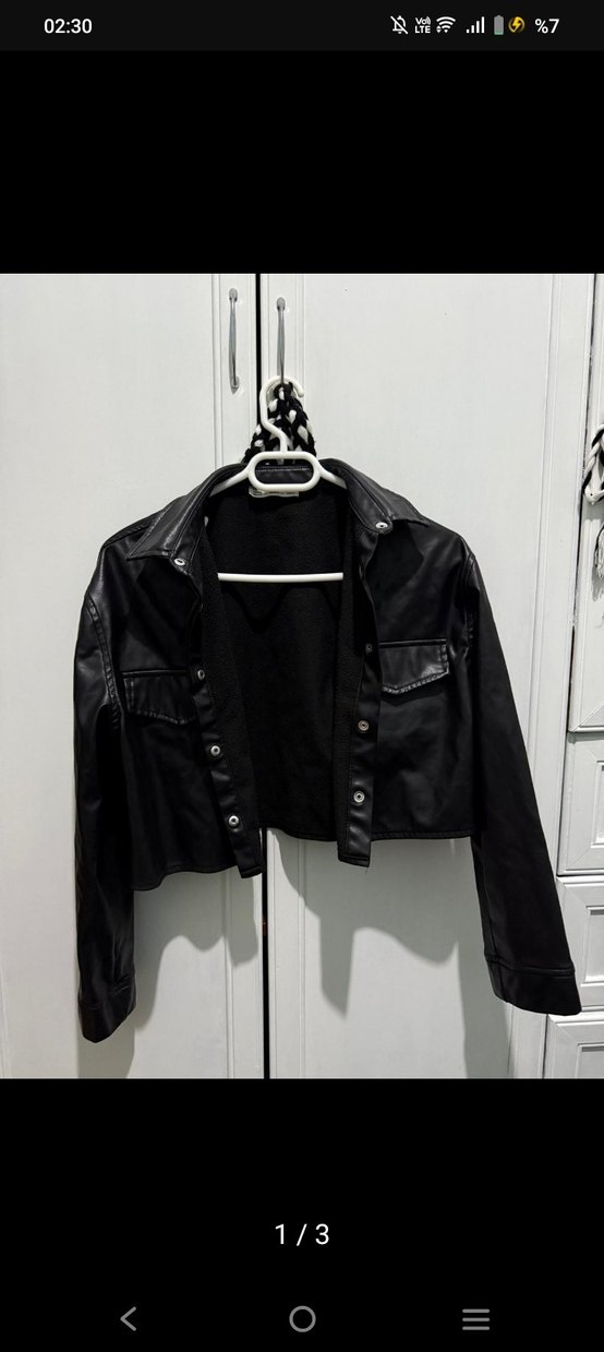 Siyah Deri Düğmeli Kadın Ceket