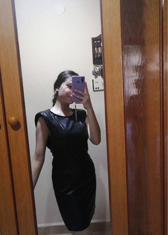 Siyah deri elbise,hiç giyilmedi sadece denedim,omuzları vatkalı 38 beden çok rahat