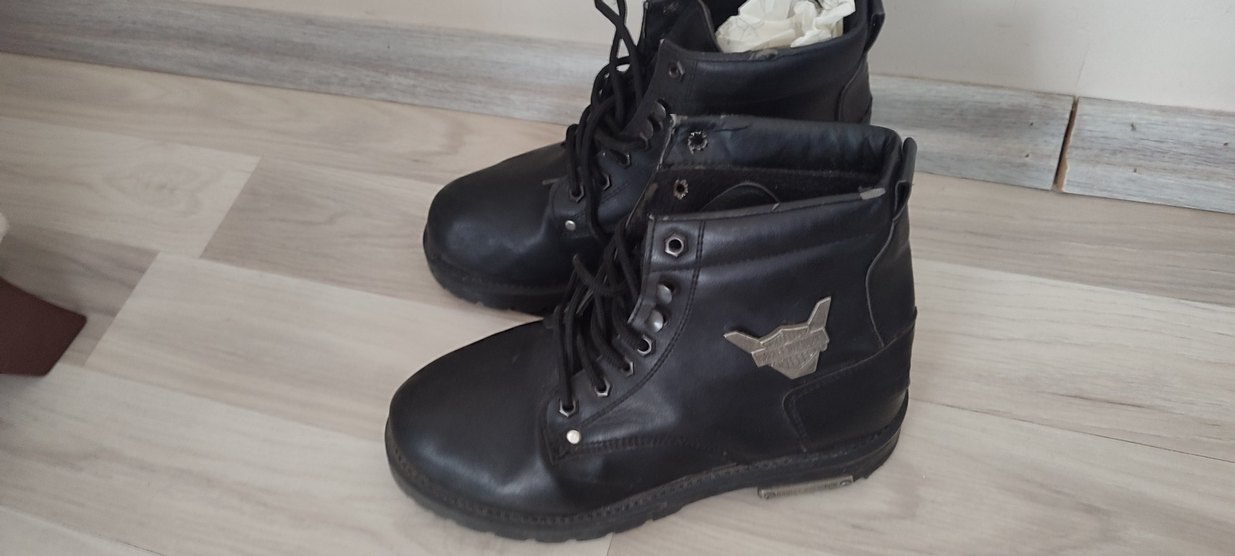 Siyah deri erkek biker bot, tokalı ve desensiz. Günlük kullanım için uygun, grunge punk tarzında, koyu renkte rock punk havası verir. mesaj atarsaniz yardımcı olurum