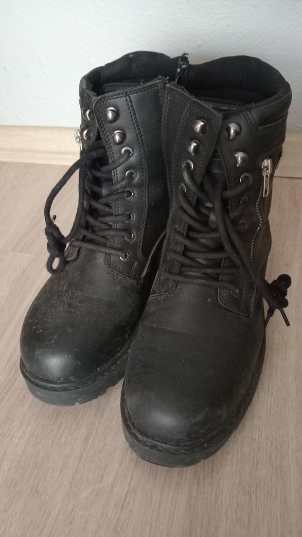 Siyah deri, yüksek topuklu erkek biker botları Günlük kullanım için grunge punk tarzında tasarlandı.