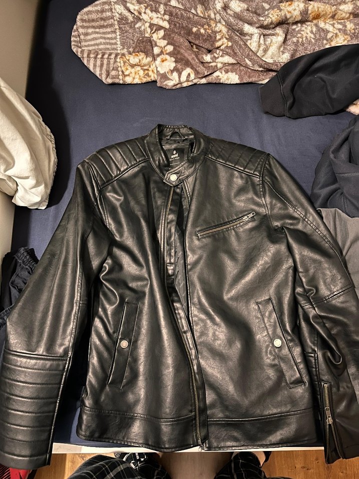 az kullanılmış. her deri cekette olacagı gibi bazı kısımlarında deri soyulması var fotoda da gözüküyor. L beden Mavi markalı orijinal